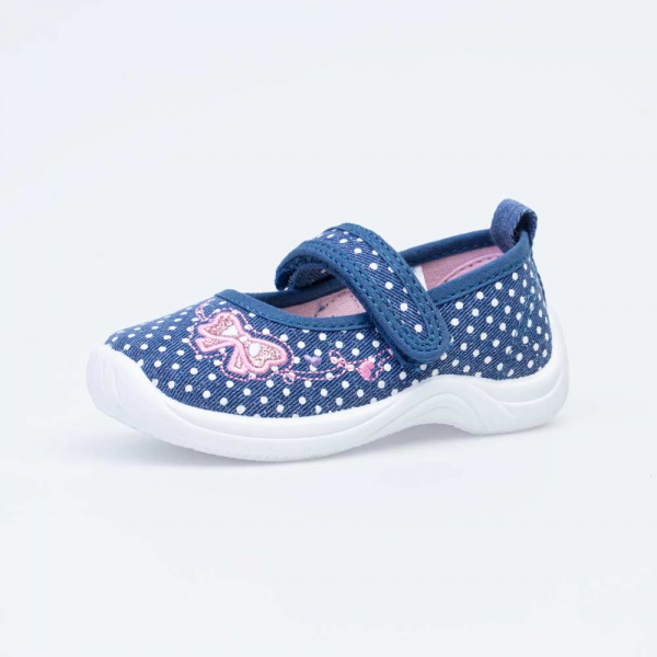 Обувь с текстильным верхом и хлопковой подкладкой. Подошва из поливинилхлорида (ПВХ, PVC) - прочного и лёгкого материала. Выполнена методом прямого прилива к верху обуви: анатомичная, повторяет контур стопы ребёнка. Формованная стелька содержит влагопоглощающий материал на основе переработанного поролона, это позволяет ножкам чувствовать себя комфортно и отлично подходит для носки в помещениях. Крепление - удобное и надежное "велькро" (липучки). Очень популярны для детских учреждений, занятий в группах и дома. Такая обувь непременно подойдёт юному непоседе.Материал подошвы: ПВХ